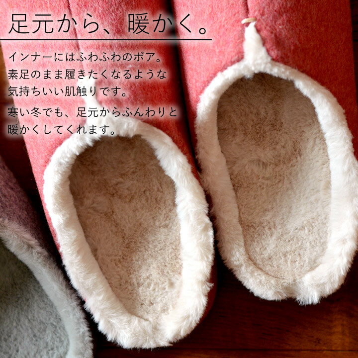 ふわふわ もこもこ の ボア が 優しく足元を包み込んでくれて 履くだけで気持ちがほっとします。