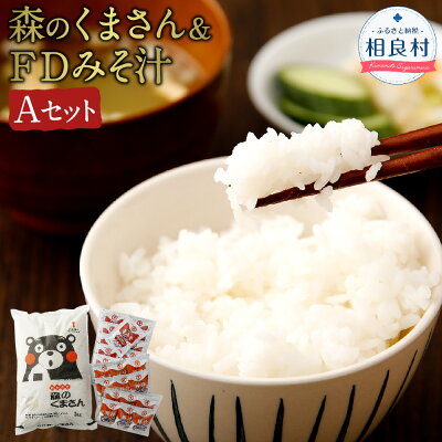 【ふるさと納税】森のくまさん&FDみそ汁Aセット お米 令和元年度産 白米 精米 特A 味噌 10食 豚汁 12食 吸い物 味噌汁 ギフト 贈り物 プレゼント 熊本 国産 九州産 送料無料