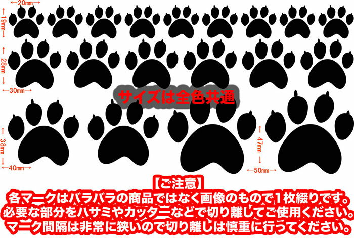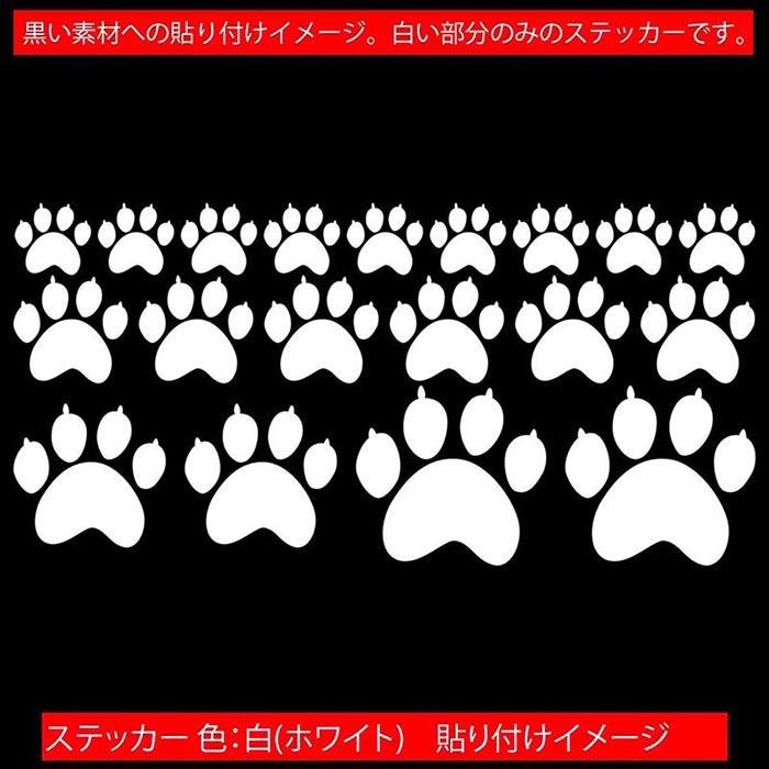 ↓↓↓↓カッティングステッカーの詳しい説明はコチラ↓↓↓↓ ↓↓↓↓貼り方の例はコチラ↓↓↓↓【商品名】肉球 足跡 ・6 カッティングステッカー全12色 約95mmX約195mm PT-006-1かわいい キュート 車 バイク ヘルメット スーツケース 犬 猫 ネコ リア ガラス カウル ボディ 複数サイズ セット 肉球 ステッカー 車 バイク アウトドア 耐水 防水 デカール図柄、ロゴ、文字部分のみが残る「切り文字」、「抜き文字」タイプの転写ステッカー(デカール)。