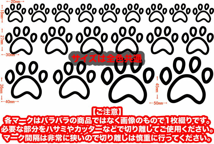 ↓↓↓↓カッティングステッカーの詳しい説明はコチラ↓↓↓↓ ↓↓↓↓貼り方の例はコチラ↓↓↓↓【商品名】肉球 足跡 ・9 カッティングステッカー全12色 約94mmX約195mm PT-003-2かわいい キュート 車 バイク ヘルメット スーツケース 犬 猫 ネコ リア ガラス カウル ボディ 複数サイズ セット 肉球 ステッカー 車 バイク アウトドア 耐水 防水 デカール図柄、ロゴ、文字部分のみが残る「切り文字」、「抜き文字」タイプの転写ステッカー(デカール)。
