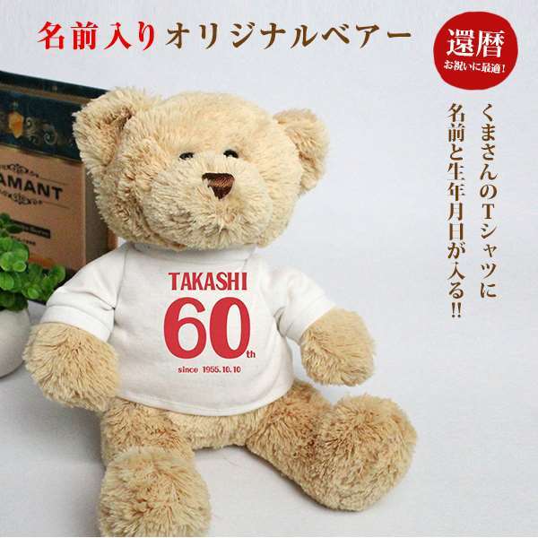 還暦祝い 名前入り 名入れ くま テディベア Teddy bear ぬいぐるみ Tシャツ 半袖 クマ 還暦祝 60歳【還暦祝 02】